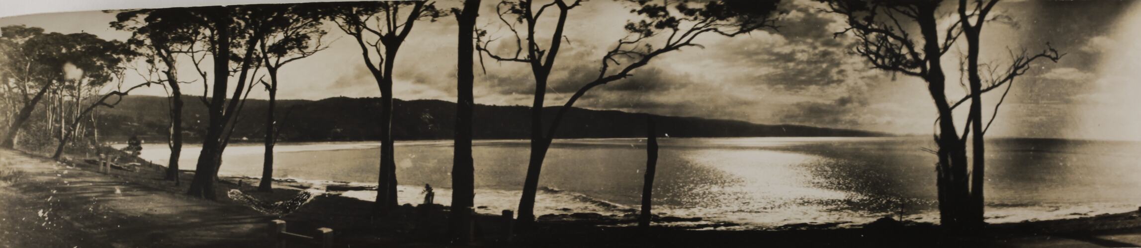 Monochrome silver gelatin panorama photograph.
