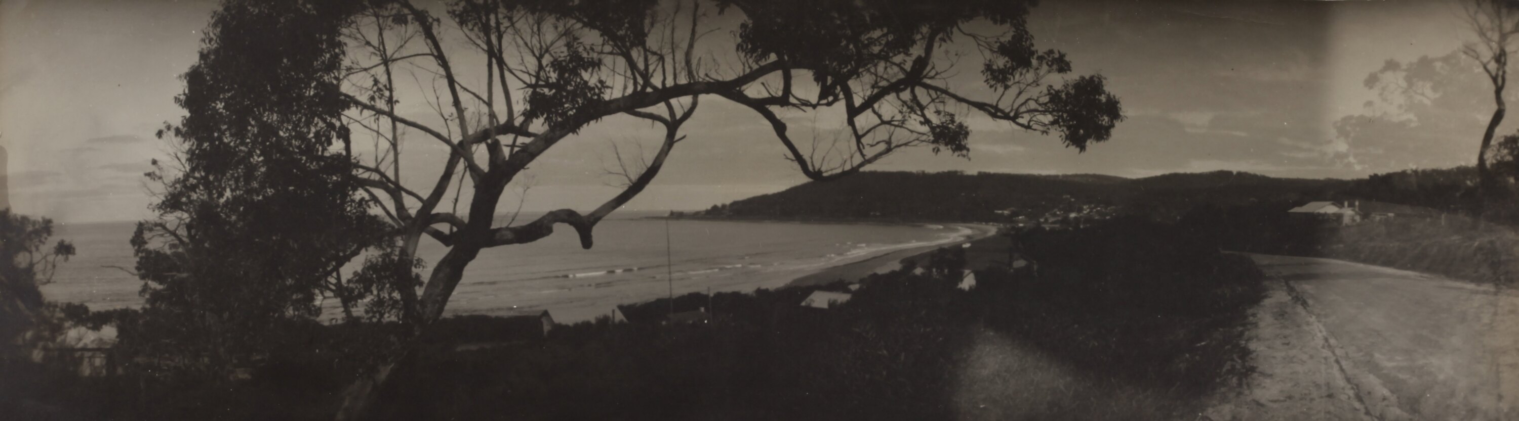 Monochrome silver gelatin panorama photograph.