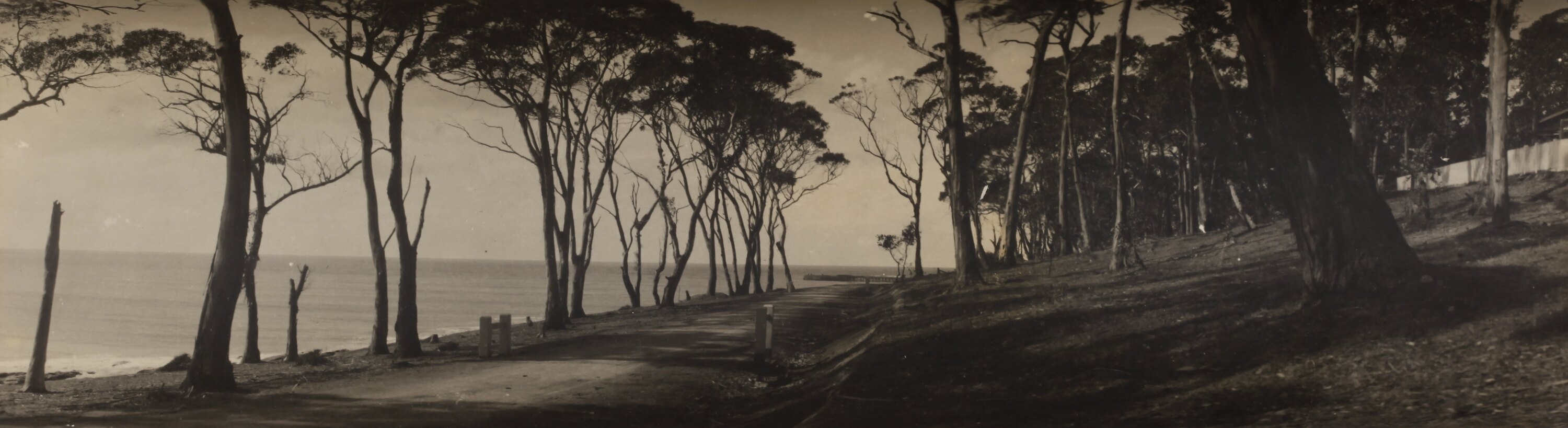Monochrome silver gelatin panorama photograph.