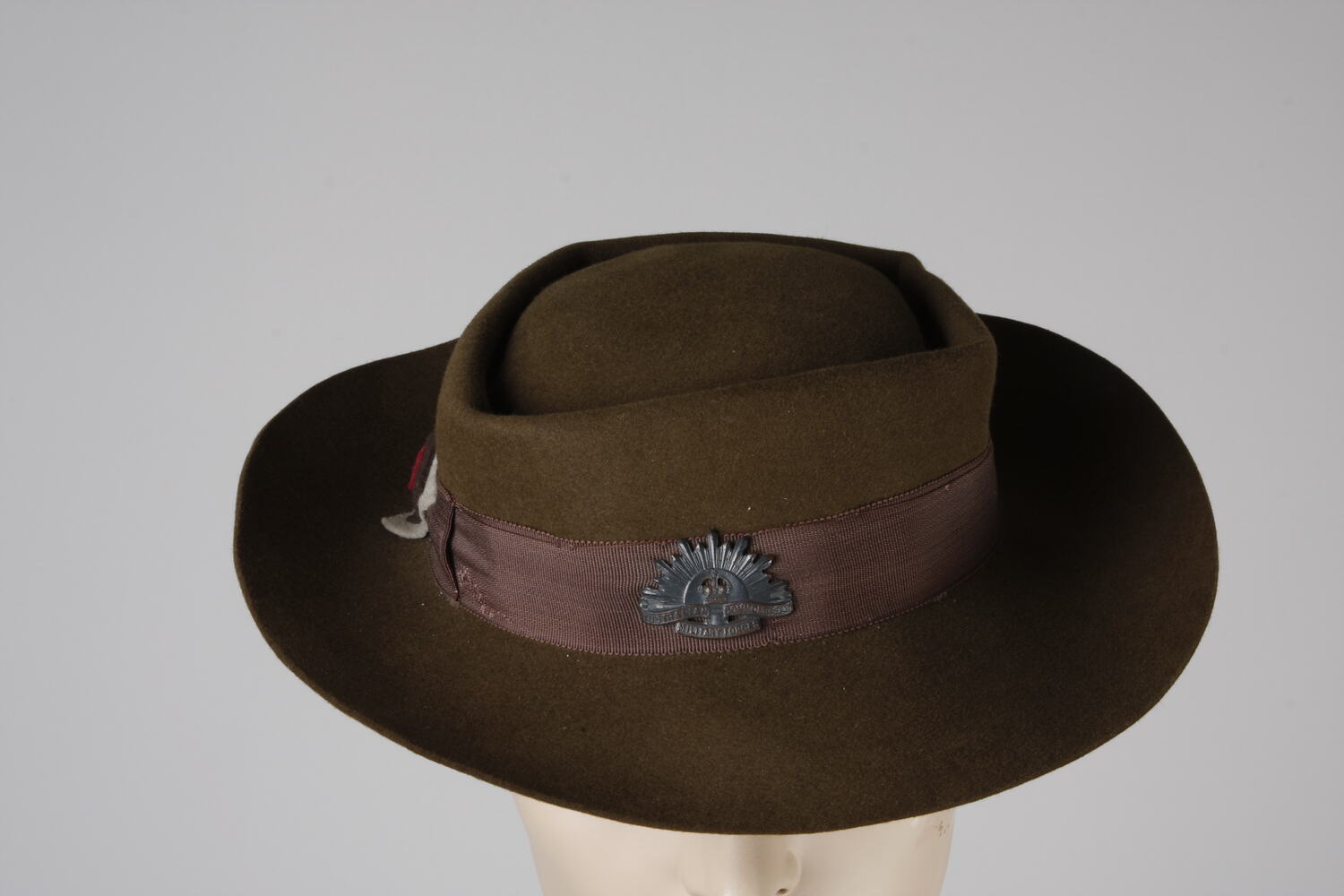 Khaki fur felt World War II hat with rising sun badge. The hat was probably worn with Australian Army Medical Women's Service uniform HT 25769.
