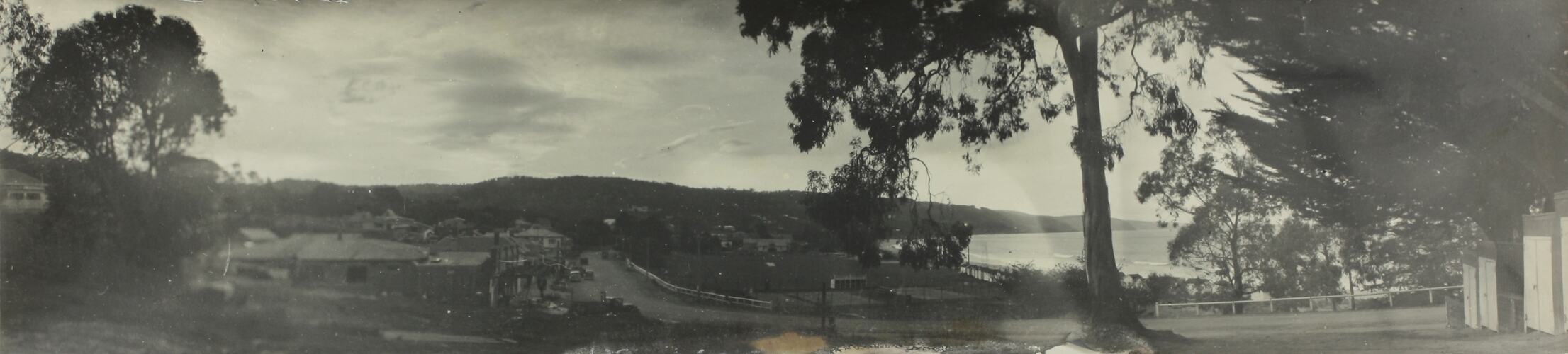 Monochrome photograph looking along Mountjoy Parade, Lorne. It is part of a collection of glass plate negatives, stereoscopic negatives, panoramas, postcards, photographs and cameras belonging to the William S Anderson Collection.