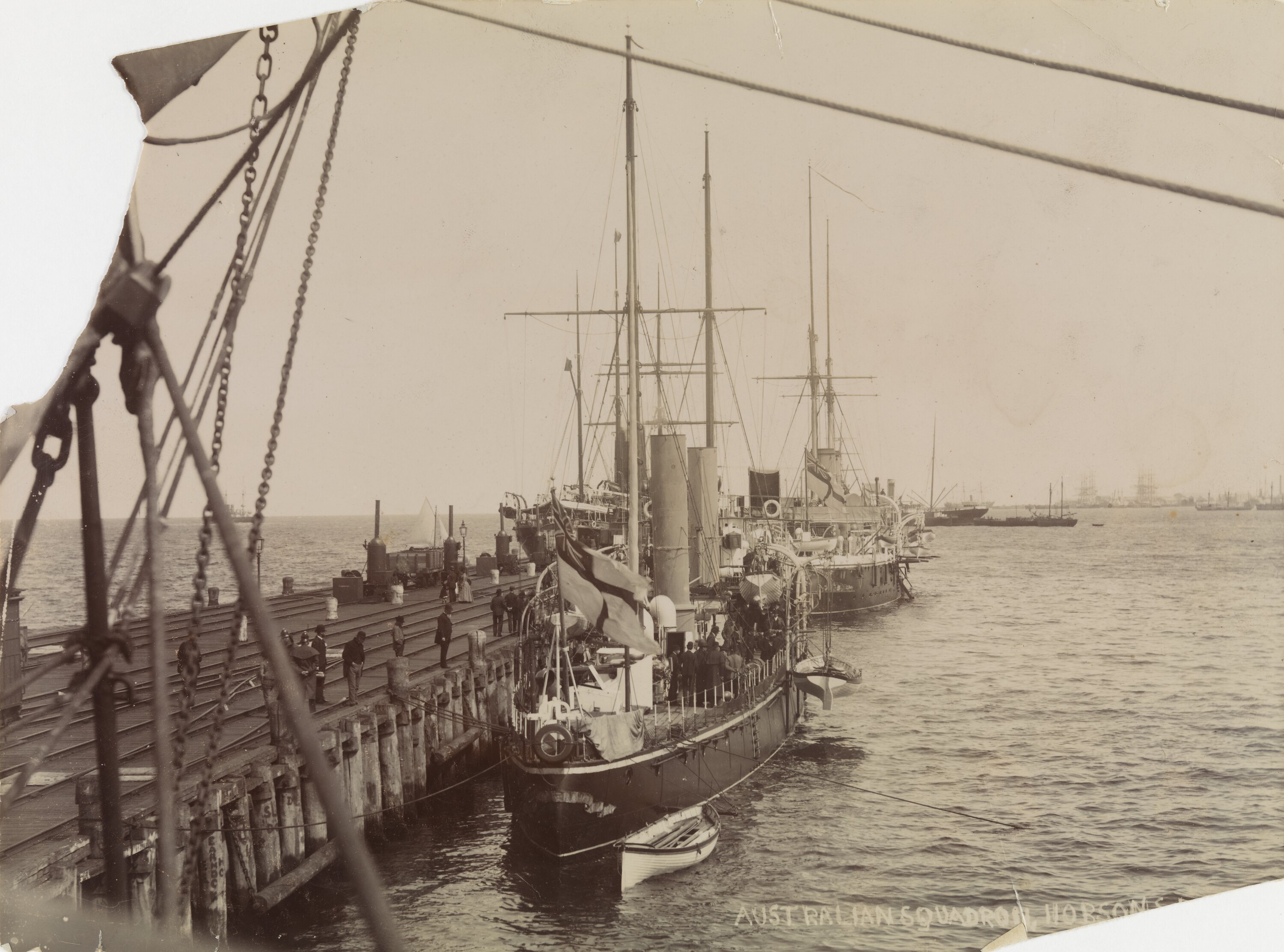 Handwritten in grey pencil on the back of photograph: '4' Printed handwritten text in white on photograph: 'AUSTRALIAN SQUADRON, HOBSONS'
