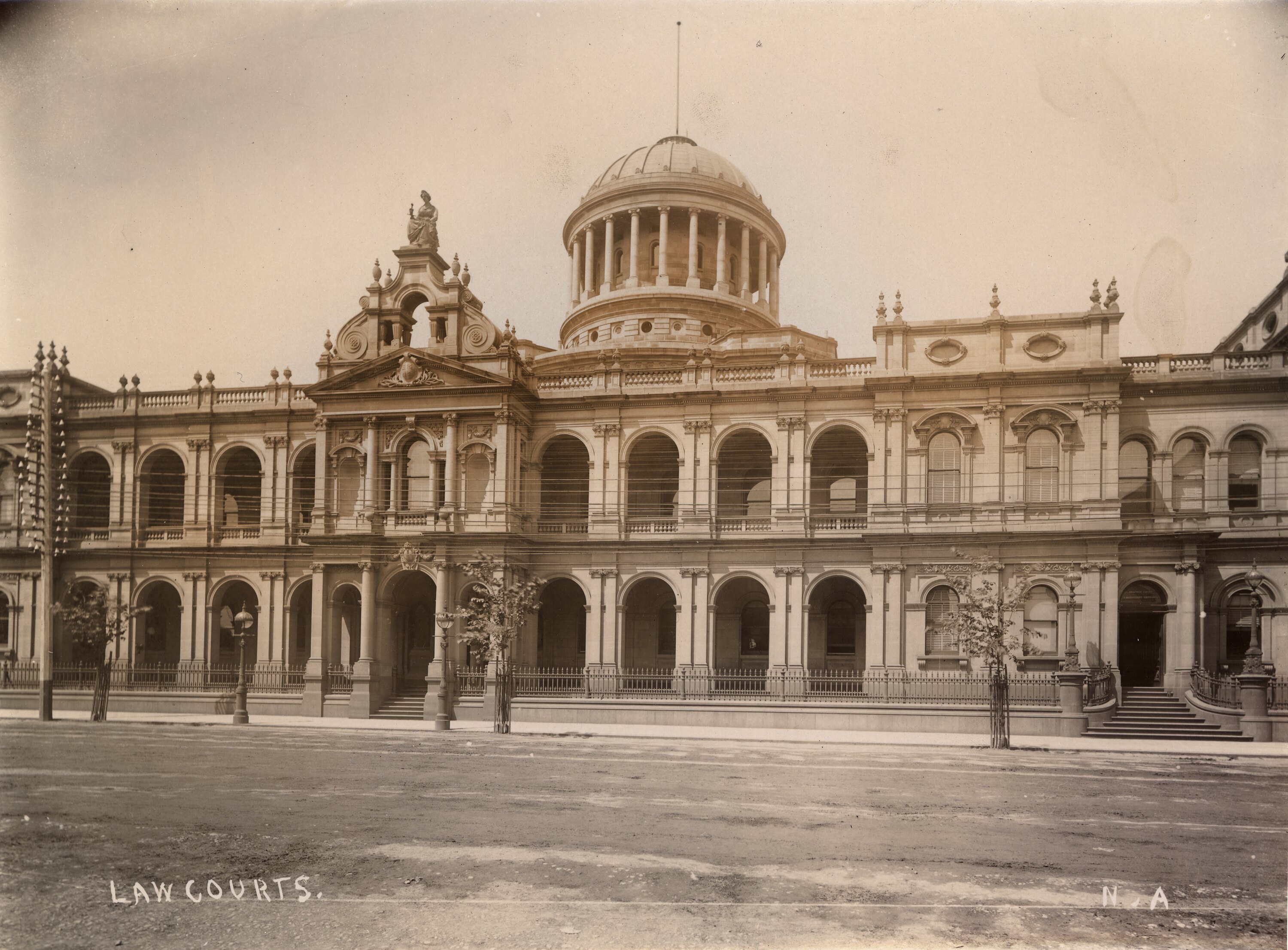 Handwritten in grey pencil on the back of photograph: '39' Printed handwritten text in white on photograph: 'LAW COURTS. / N . A'