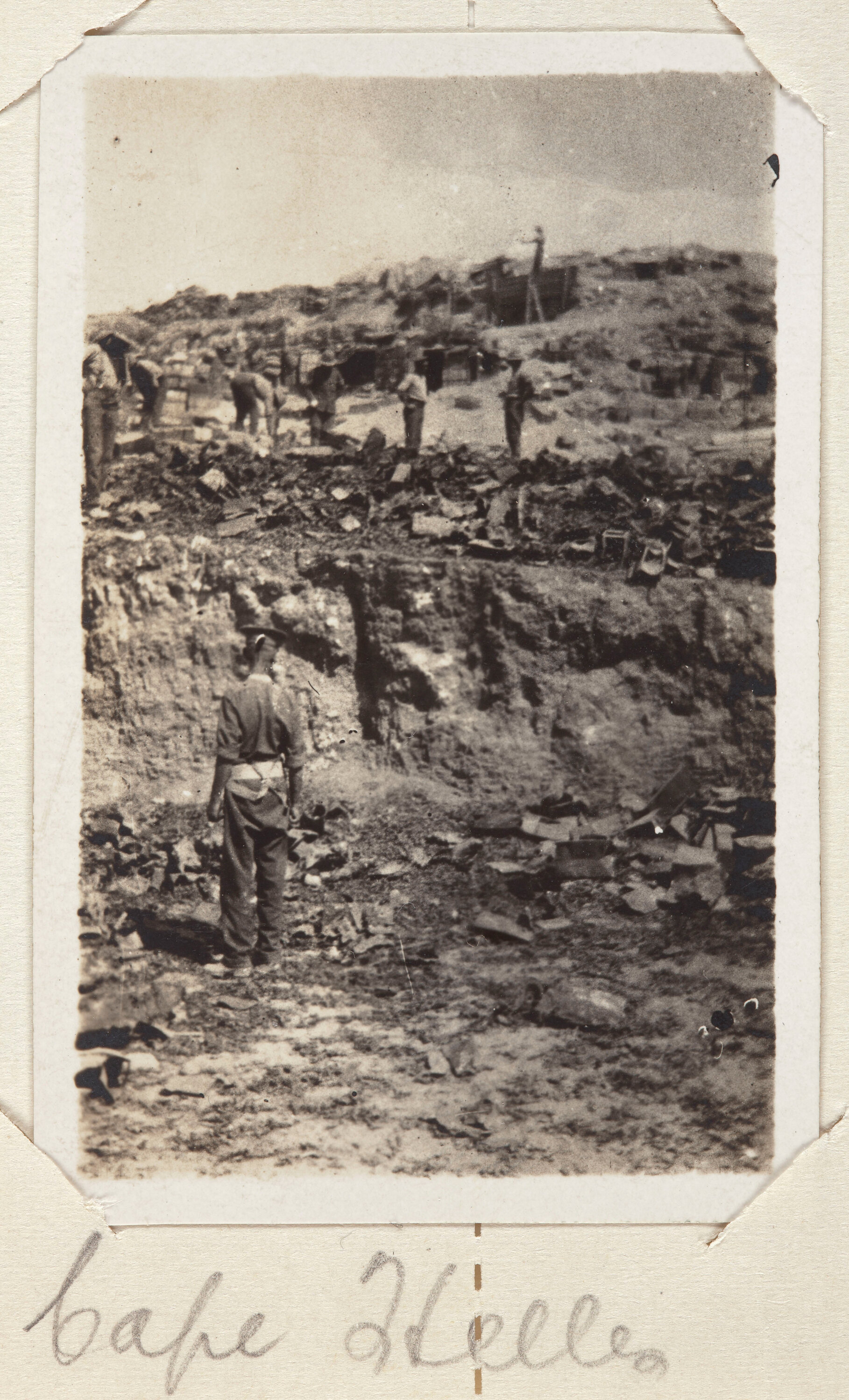 This photograph is in a very significant album which includes a number of excellent photographs of Australian soldiers at Gallipoli and surrounding areas. Some of these are particularly clear and well-composed - for example, 'Rest Gully Anzac' shows hundreds of soldiers sitting and standing around talking and a valley with lots of dugouts and shelters. 'Old Kit etc at Anzac Ordnance Stores 1915' is another clear photograph, ,showing rubbish that the Anzacs generated at Gallipoli. Many of the photographs were taken when the weather was hot, but there are also a number of images taken in the snow. Another, 'Extreme Right of Anzac' demonstrates the steepness of the terrain and the mixture of clothing that the soldiers wore. All of the photographs appear to have been taken at times when the photographer was 'off duty', since the images are of the landscape or soldiers at rest.