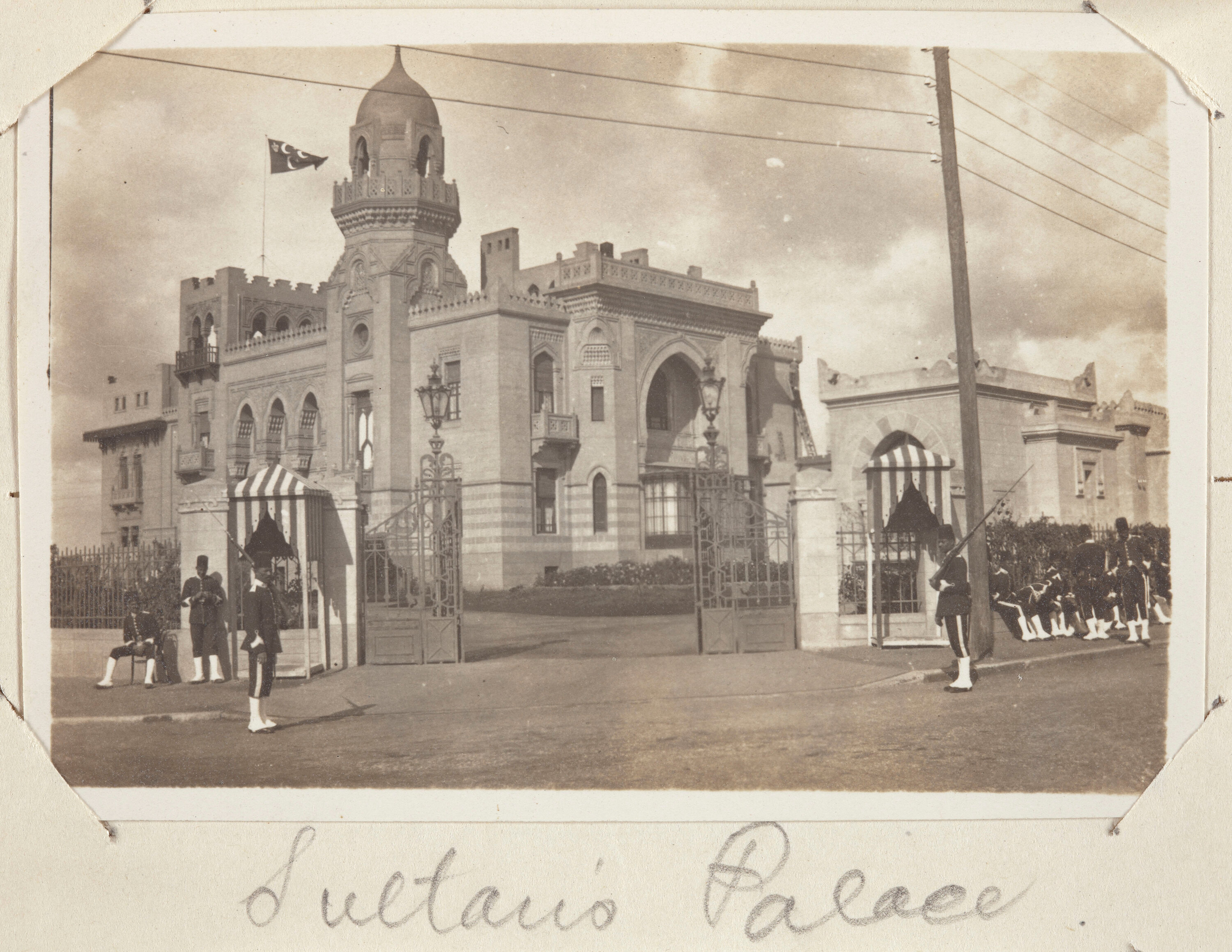Image depicting the palace of the Egyptian Sultan. The Sultan at the time the image was taken is likely to have been Hussein Kamel of the Mohammad Ali Dynasty, who ruled from December 1914-October 1917.