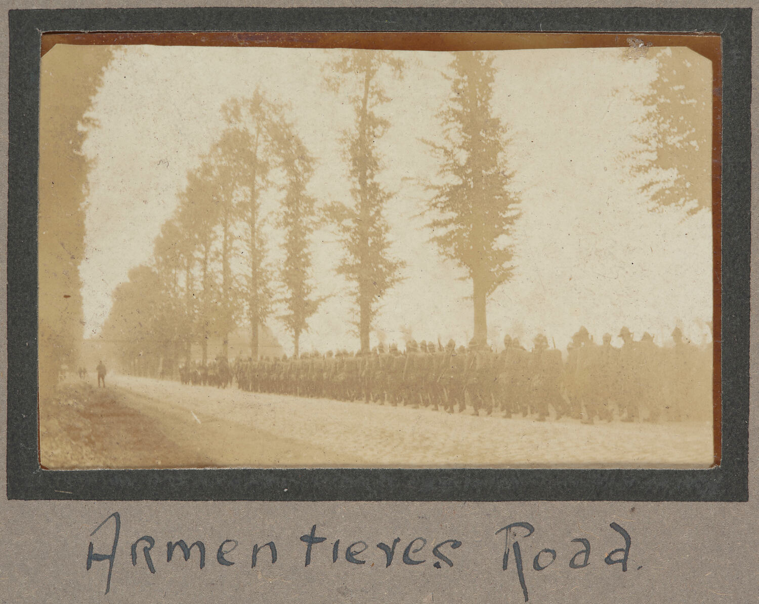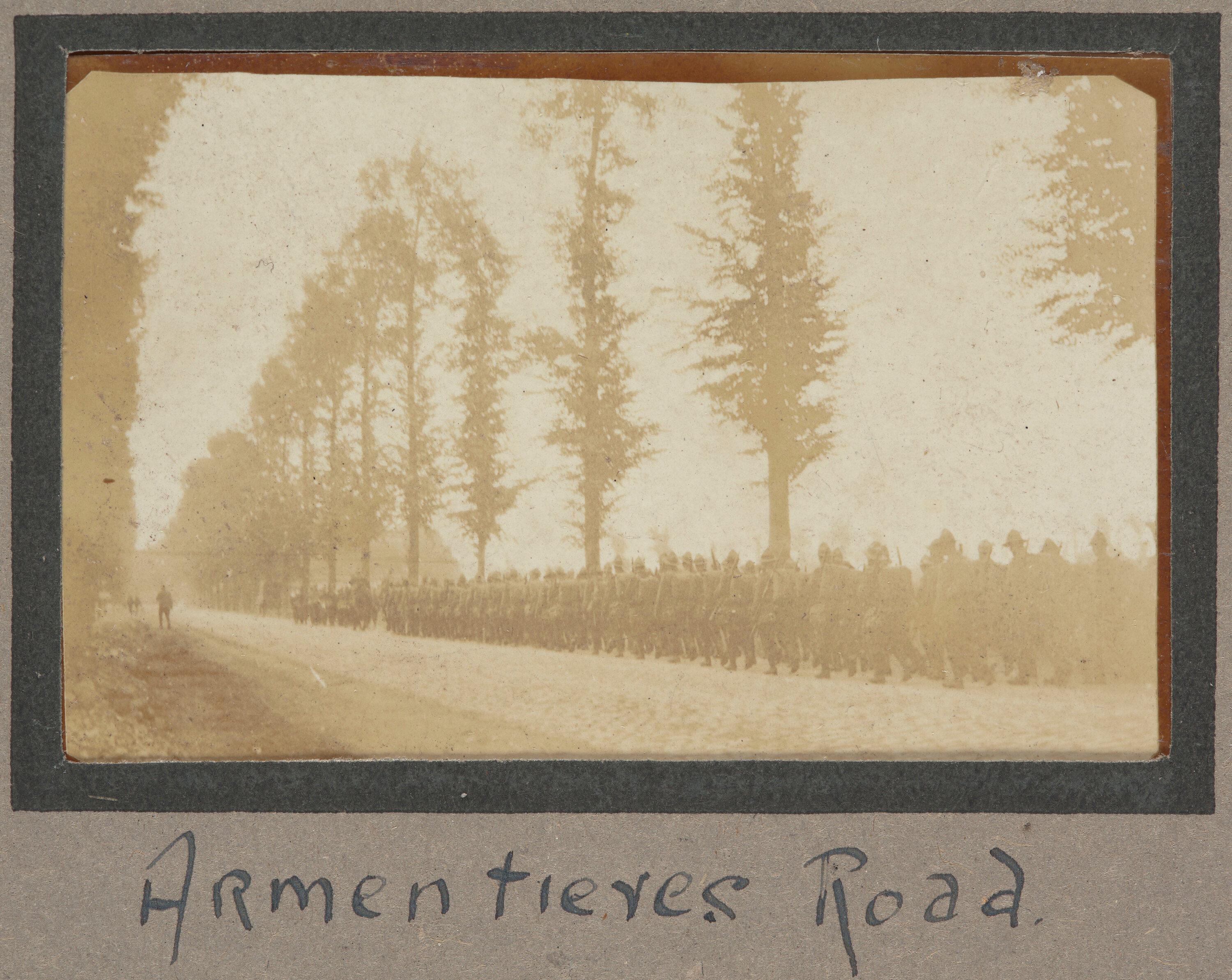 Handwritten in ink on matt directly below photograph: 'ARmentieres Road.'