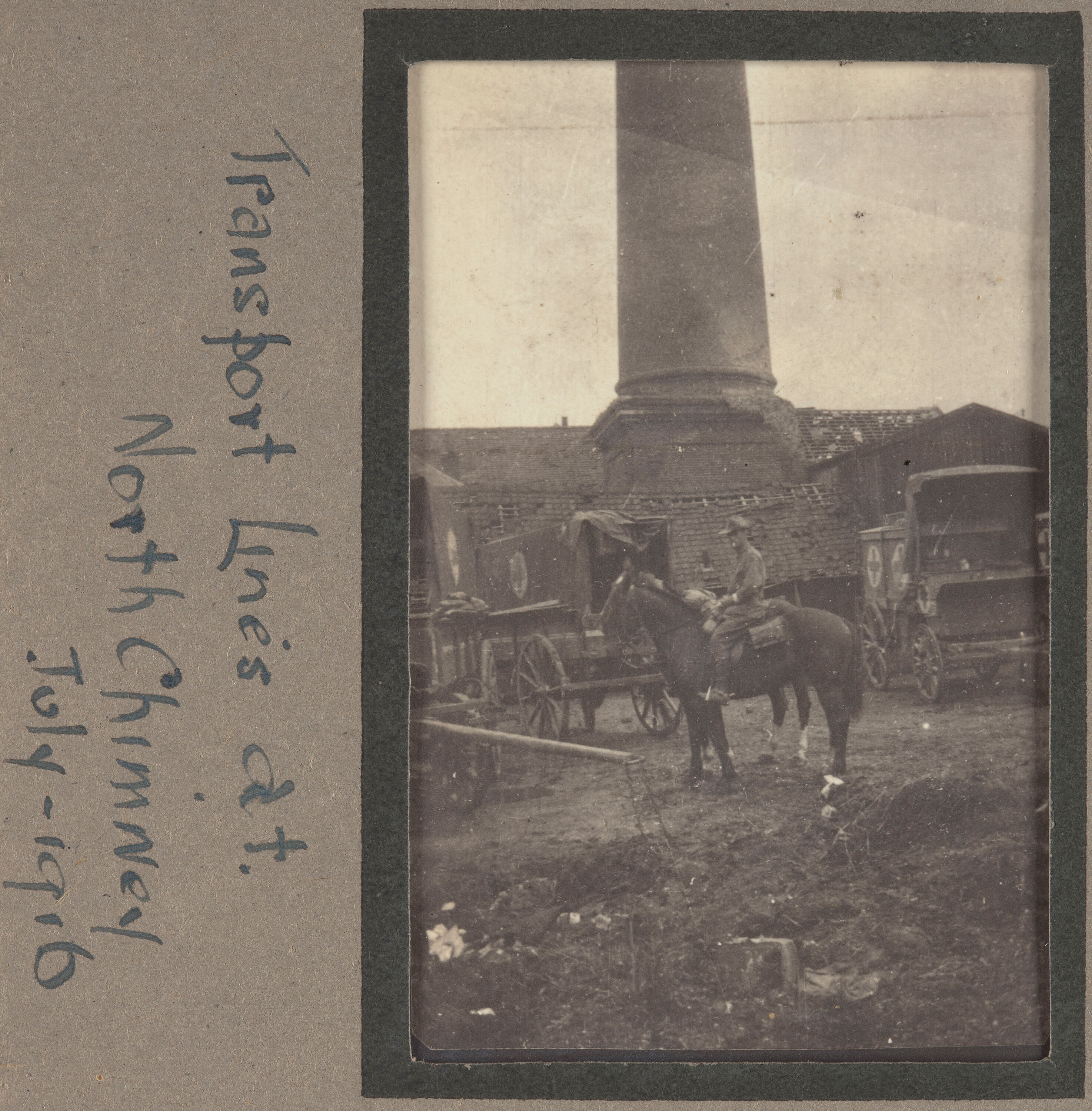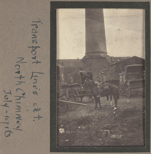 Hand written in ink on matt directly below the photograph: 'Transport Lines at. / North Chimney / July - 1916'