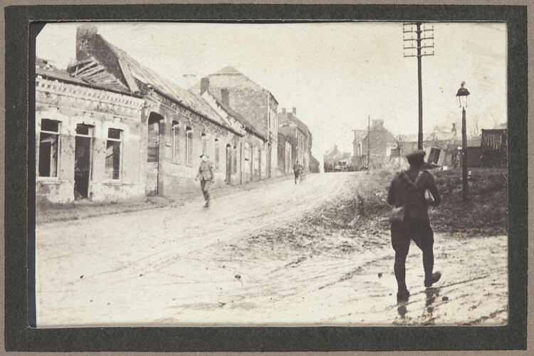 Most photographs are of Albert and surrounds so it would seem probable that most were taken during and after the Battle of the Somme (1916). In addition there are also photographs dated 1917. The photographs were taken by Private John Edward Lord, 13th Field Ambulance, and brought back to Australia by him and compiled in an album at the end of the First World War.