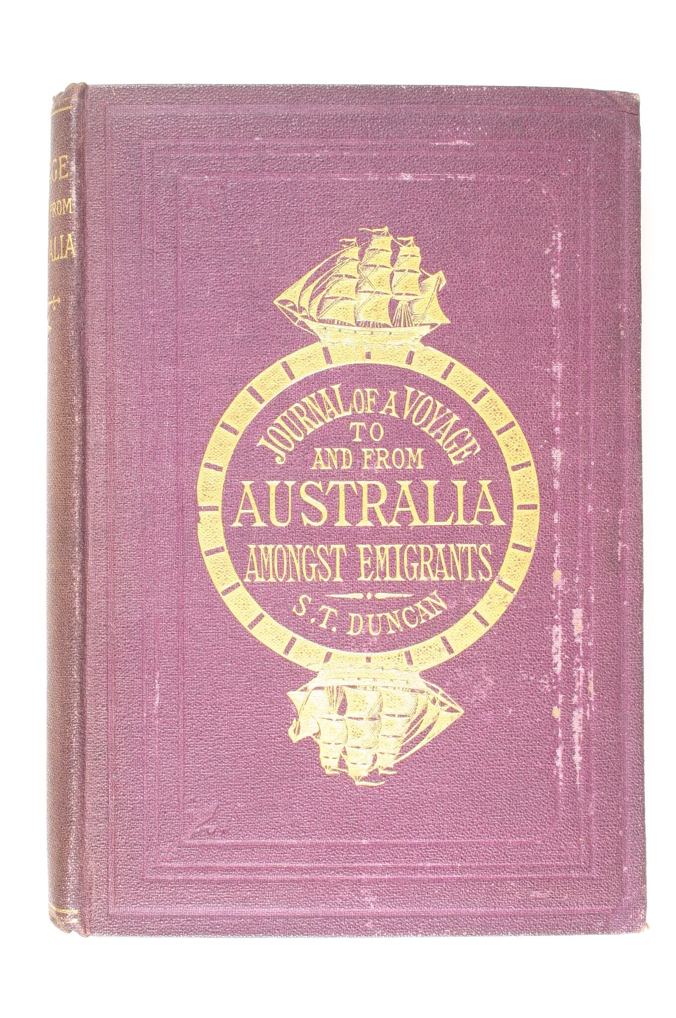 Cover Title: 'JOURNAL OF A VOYAGE TO AND FROM AUSTRALIA AMONGST EMIGRANTS - S.T. DUNCAN,' Title Page: 'JOURNAL OF A VOYAGE TO AUSTRALIA BY THE CAPE OF GOOD HOPE, SIX MONTHS IN MELBOURNE, AND RETURN TO ENGLAND BY CAPE HORN, INCLUDING SCENES AND SAYINGS ON SEA AND LAND. BY SINCLAIR THOMSON DUNCAN. - New and Enlarged Edition, with Map and Frontpiece Illustration. - EDINBURGH: JAMES GEMMELL, GEORGE IV. BRIDGE. 1884.'