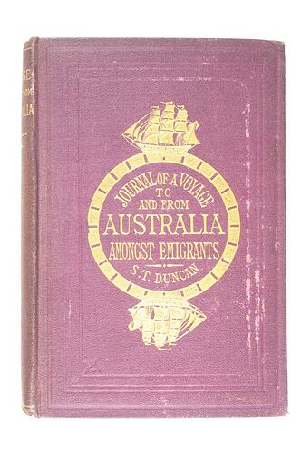Book entitled 'Journal of a Voyage to Australia by the Cape of Good Hope, Six Months in Melbourne, and Return to England by Cape Horn, including Scenes and Sayings on Sea and Land', by Sinclair Thomson Duncan. First published by James Gemmell, Edinburgh, 1884.