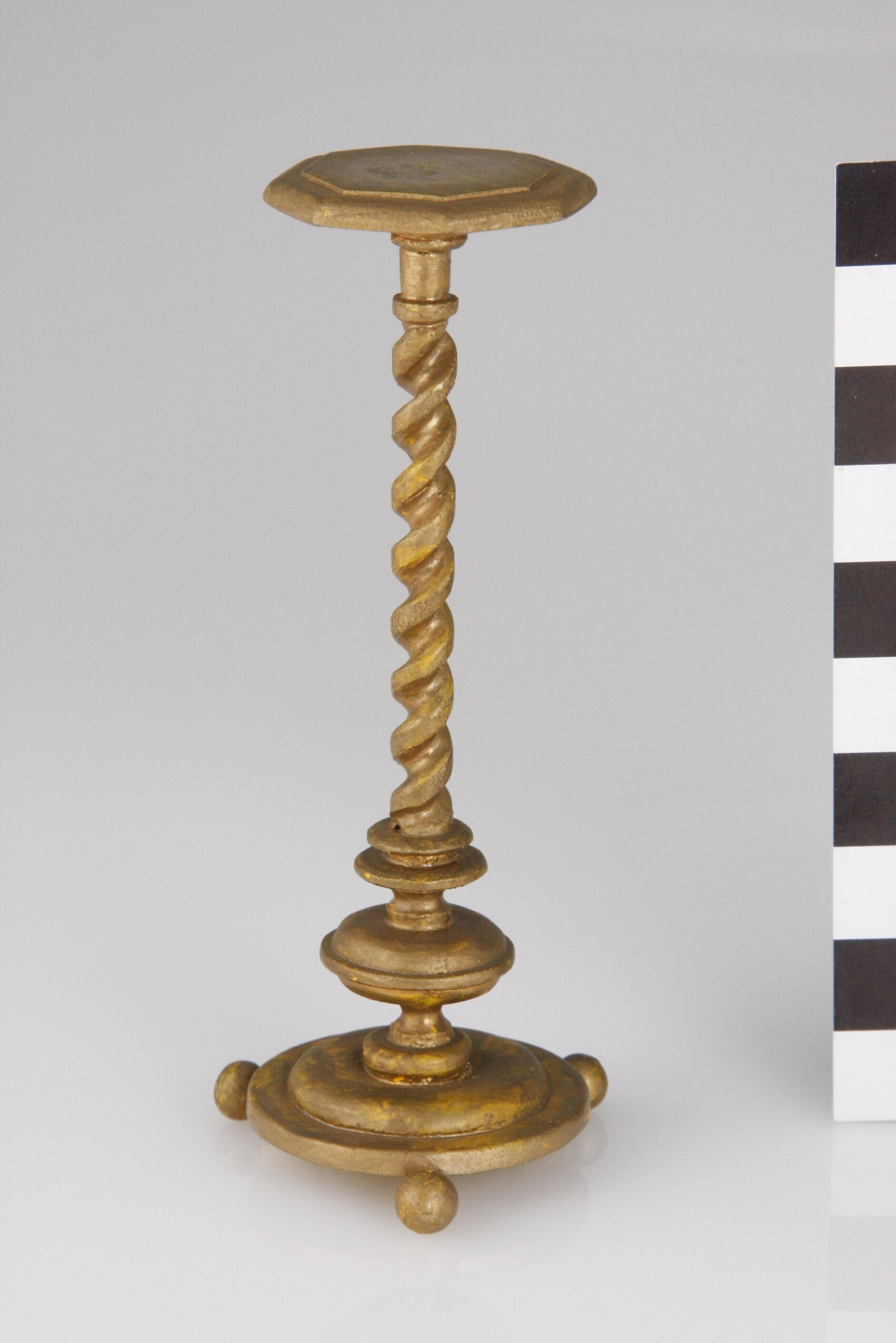 Gold painted wooden flower pot stand. Turned centre pole.