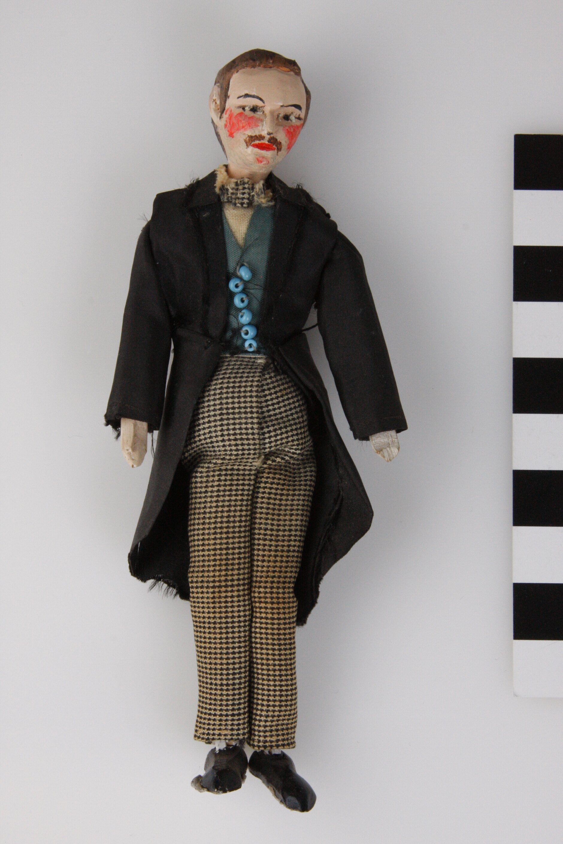 Male Doll from Room 11 - Withdrawing Room, Main Building Section, Pendle Hall. This doll sat on a chair to the left of the fireplace.