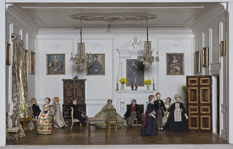 It was created by Felicity Clemons as part of a 40 project to create a grand fully-furnished Georgian style country dolls' house. The project began in the 1940s when Felicity's daughter, Antonia, was given a three-room dolls' house by her grandmother. Mrs Clemons was not happy with its scale or authenticity and so began a rebuilding project which resulted in a four storey grand house, now known as Pendle Hall. Although some items were purchased during shopping trips to Melbourne, the majority of furnishings were constructed by Felicity's own hands, using numerous reference books and magazines.