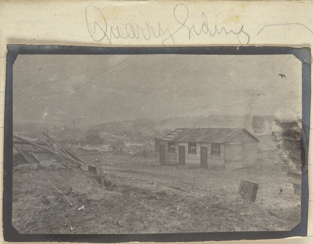 Hand-written on secondary support left side above photo: '737' Hand-written on secondary support above photo: 'Quarry Siding'