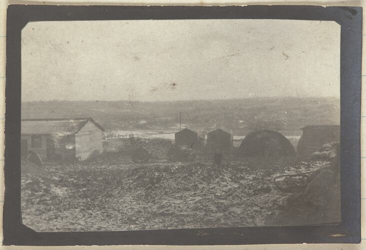 Photographs in the album depict army camps, hospitals, trenches, early tanks, landscapes, cemeteries and graves and groups of posed Australian soldiers. The places Lord mentions in his captions are La Boiselle, Quarry Siding, Pozieres, Albert, Bapaume and Favreuil.