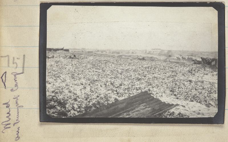 Hand-written in pencil on the secondary support on the left side of the photograph: '751' Hand-written in pencil on the secondary support on vertical to the left side of the photograph: 'Mud [triangle symbol / our [illegible] Camp'