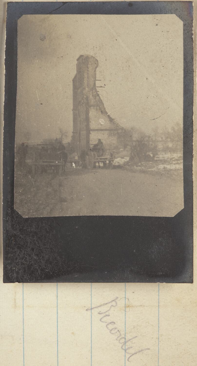 One of 185 black and white photographs in an album, taken in France during World War I by Sergeant John Lord. Some pages are blank.