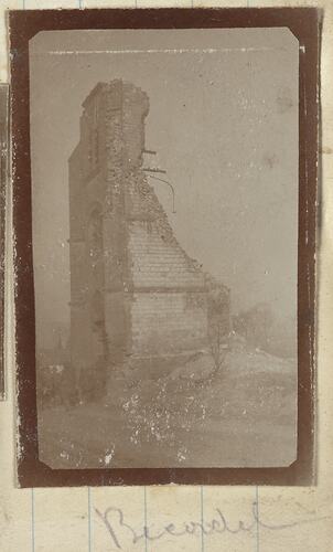 One of 185 black and white photographs in an album, taken in France during World War I by Sergeant John Lord. Some pages are blank.