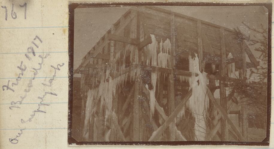 Hand-written on secondary support left side of photo: '767 / Frost 1917 / Becordel / Our Supply Tank'.