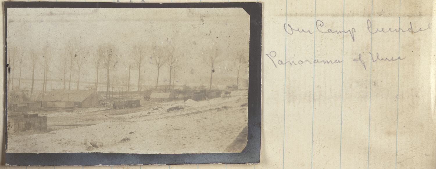 Hand written on secondary support to the right hand side of the image: 'Our Camp becordel / panorama of three'