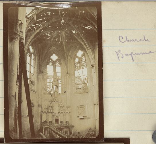 Hand-written in pencil on the secondary support on the left side of the photograph: '807' Hand-written in pencil on the secondary support on the right side of the photograph: 'Church / Bapaume'