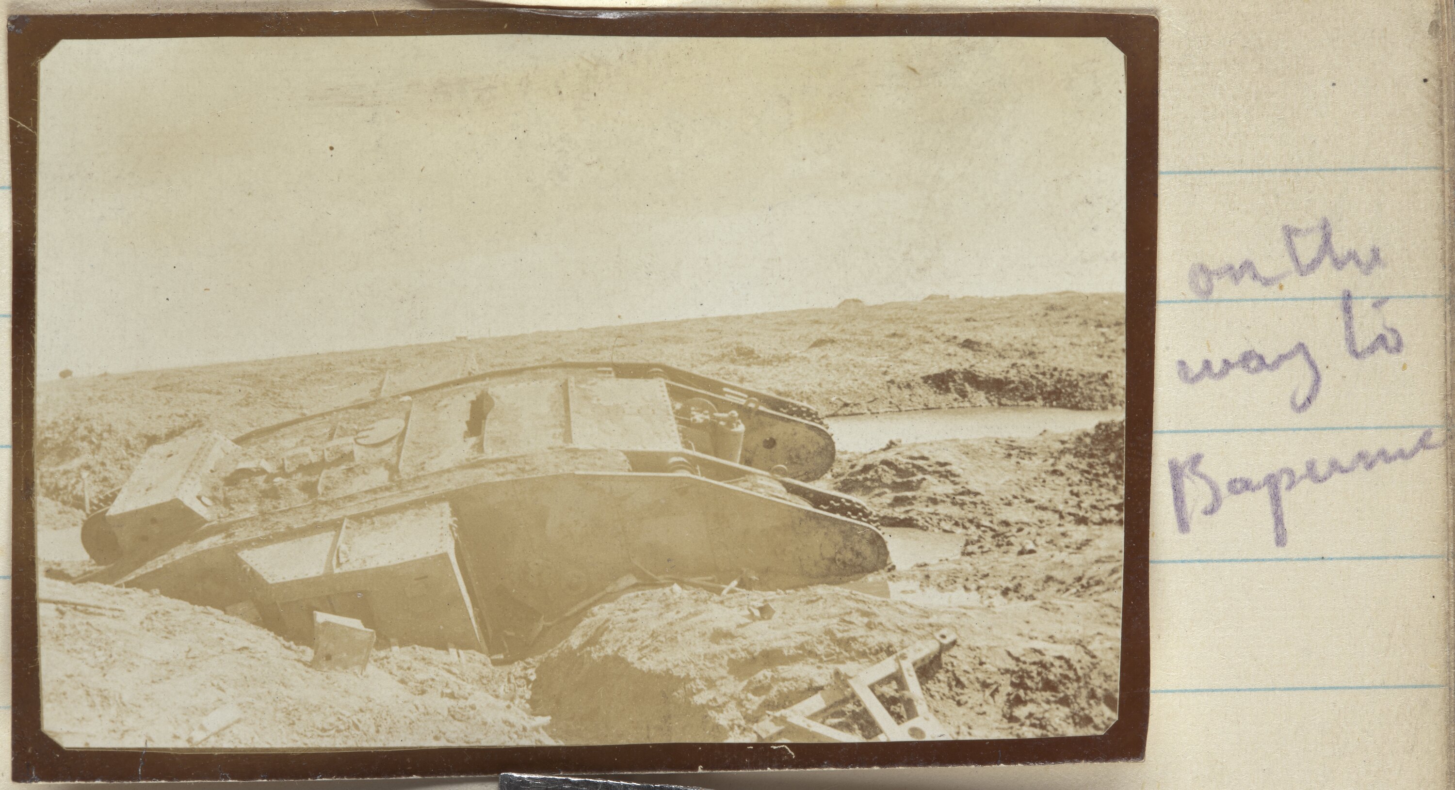 Hand-written on secondary support left side of photo: '813' Hand-written on secondary support right side of photo: 'on the / way to / Bapaume'