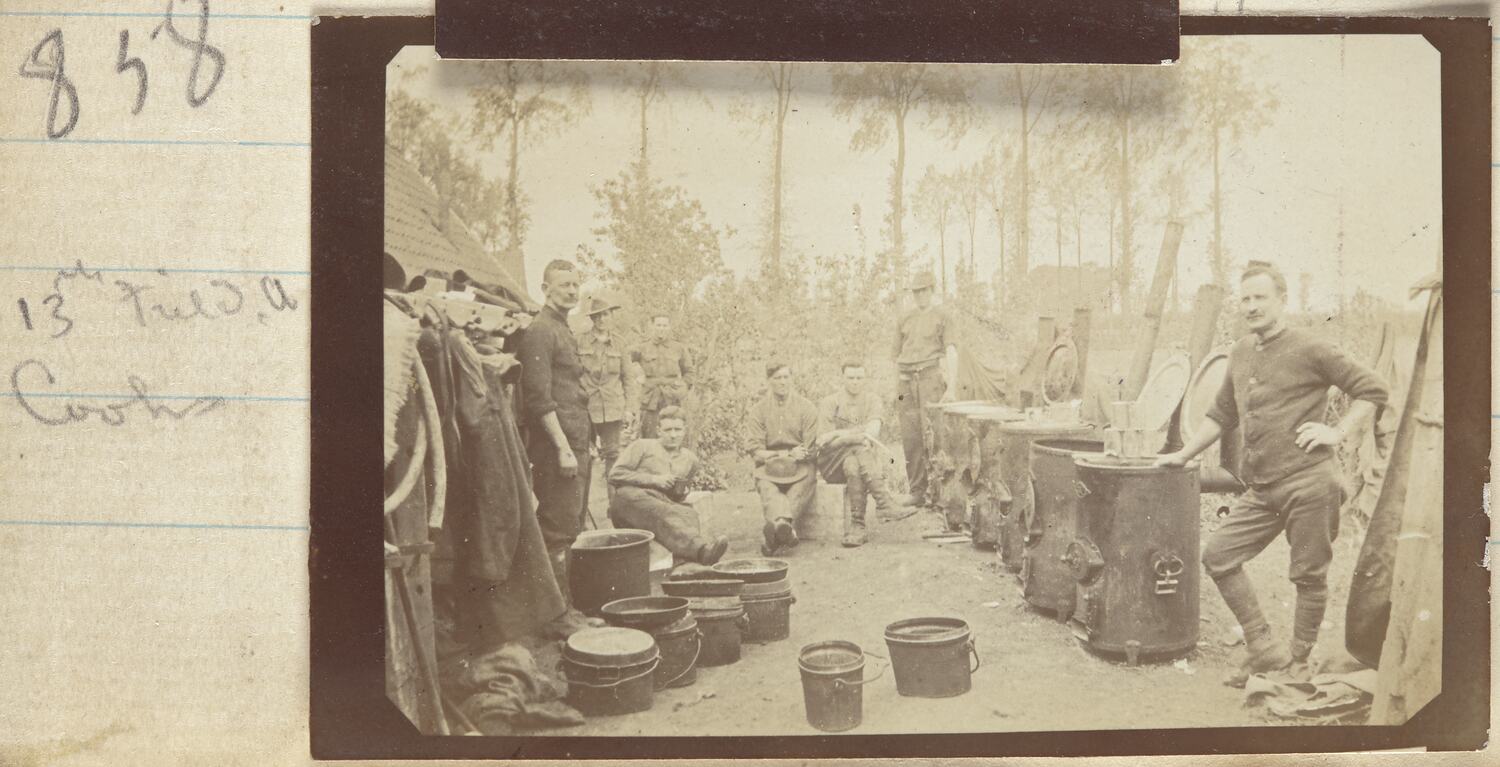 Hand written on the secondary support on the left hand side of the image: '858 / 13th field a / Cooks'