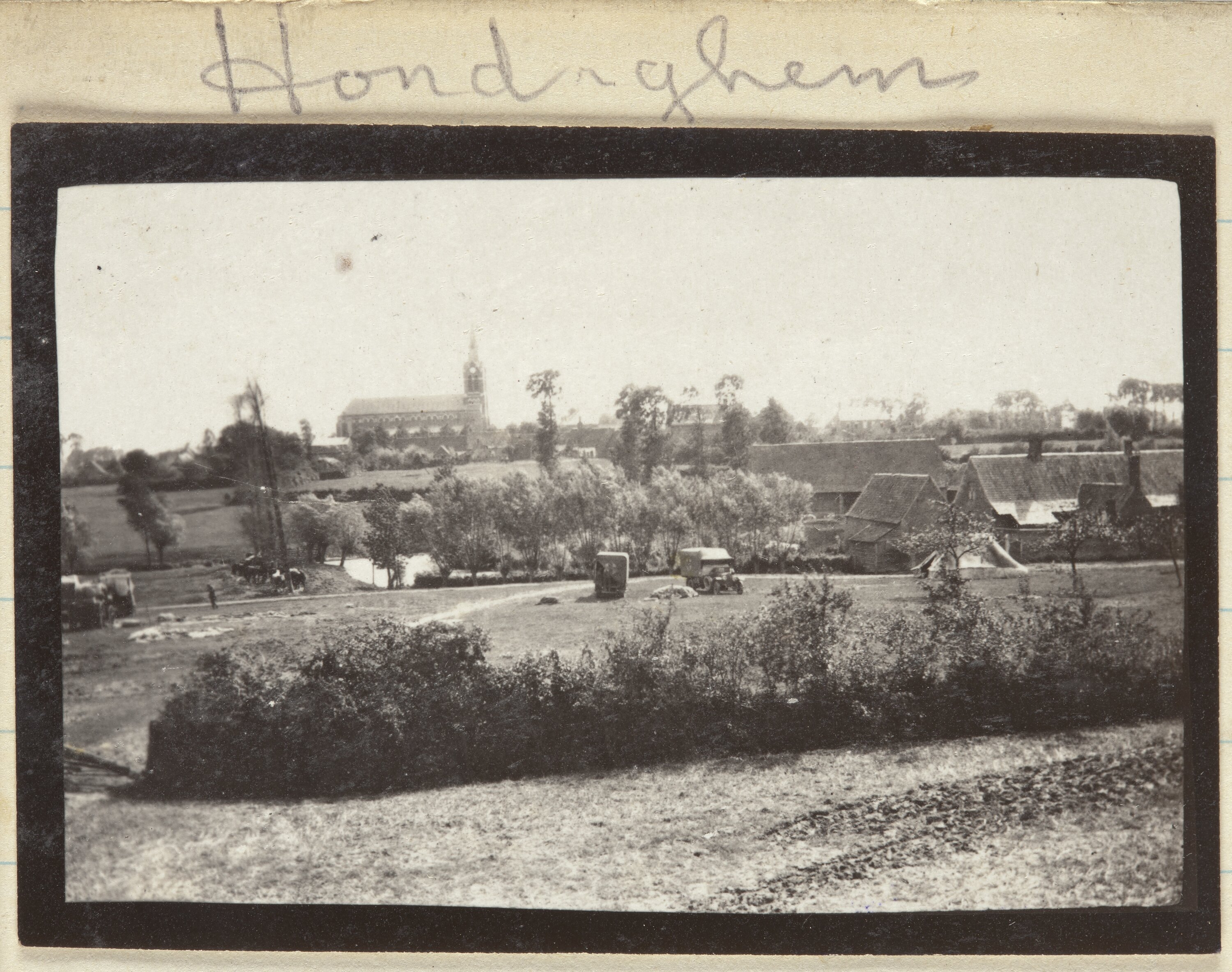 Hand written on the secondary support on the left hand side of the image: '861' Hand written on the secondary support above the image: 'Hondeghem'