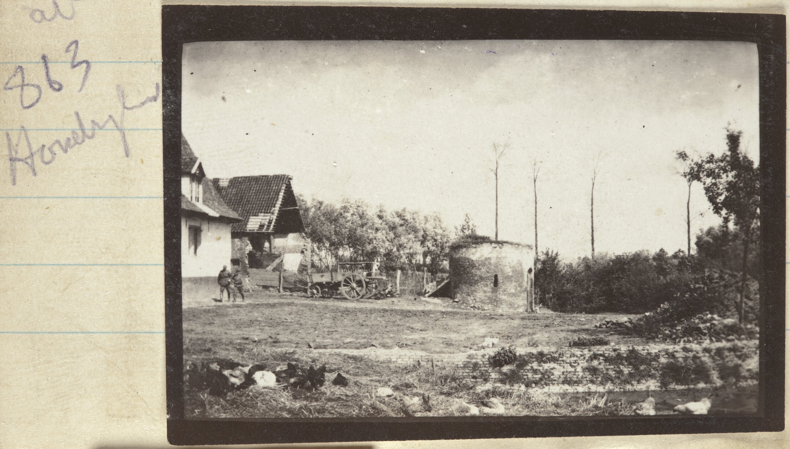 One of 185 black and white photographs in an album, taken in France during World War I by Sergeant John Lord. Some pages are blank.