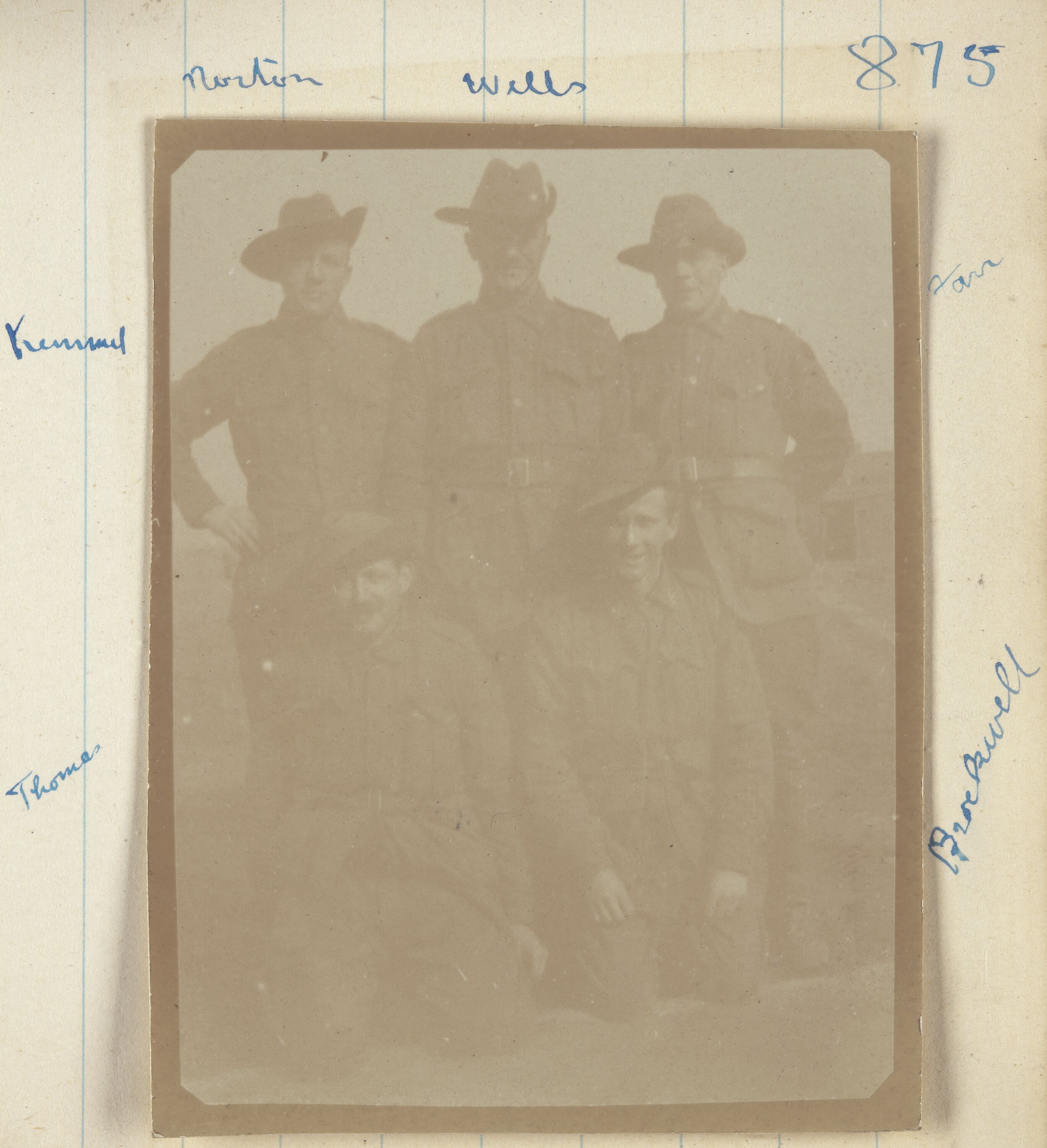 Hand written on the secondary support to the left of the image, from the lower left corner: 'Thomas' 'Kemmel' 'Norton' 'Wells' '875' '[illegible]' '[illegible possibly Blackwell?]'