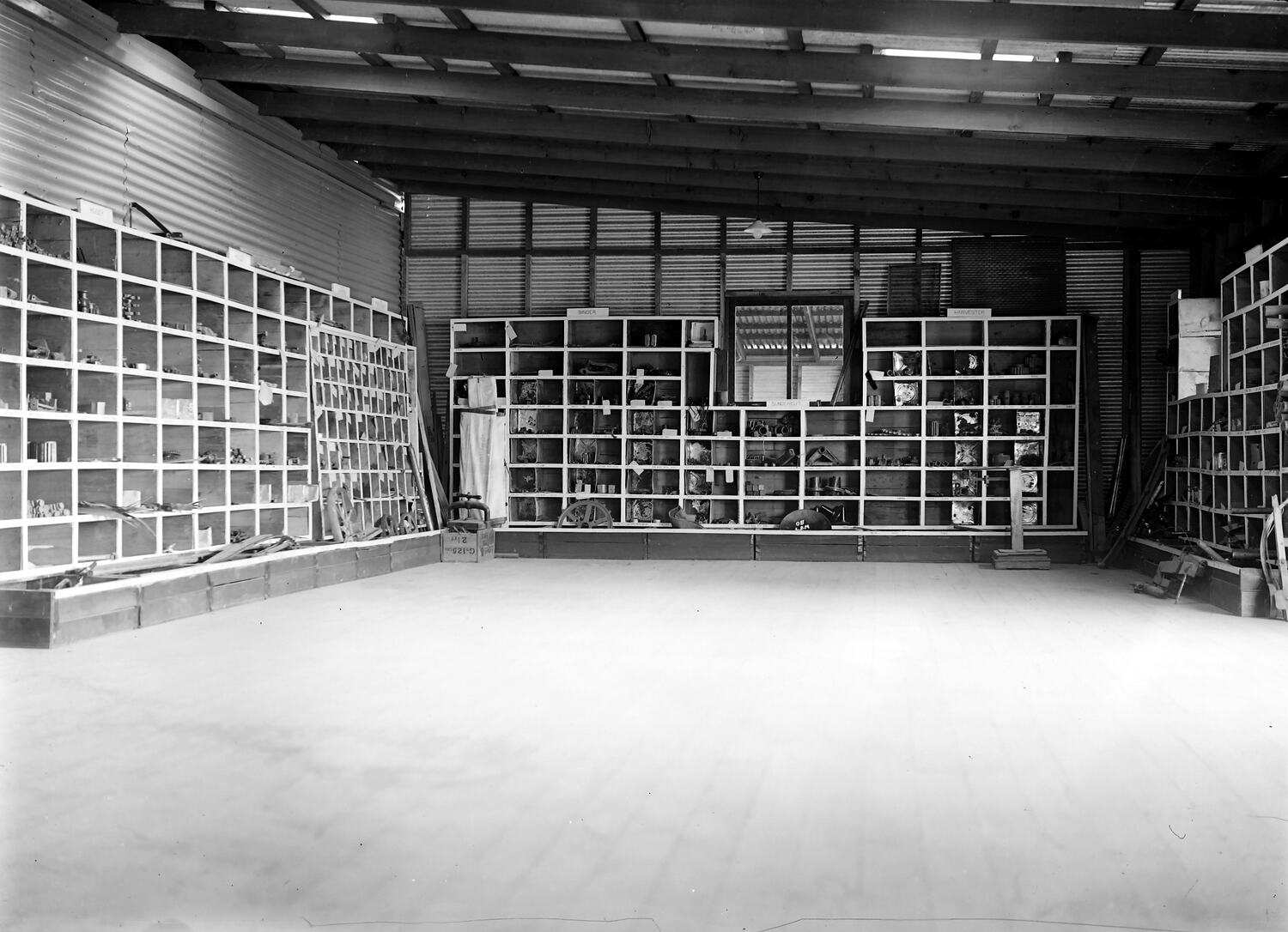 Glass negative showing the interior of H.V McKay Massey Harris' South Australian workshop in 1938.