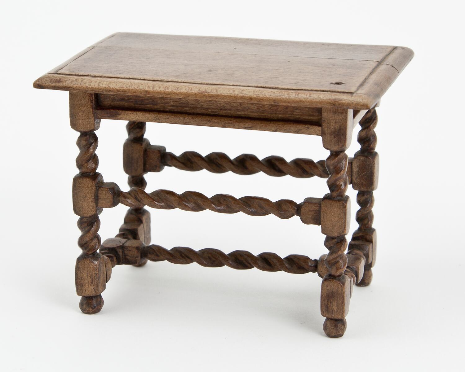 Rectangular wooden table. Four turned legs and rails.