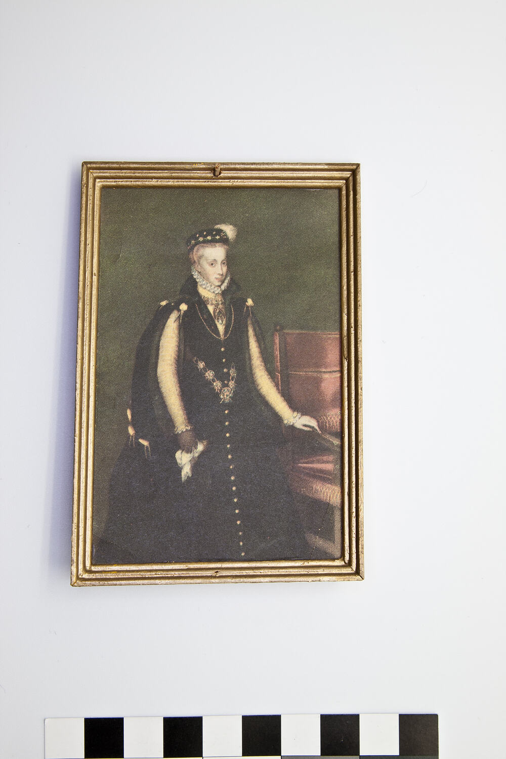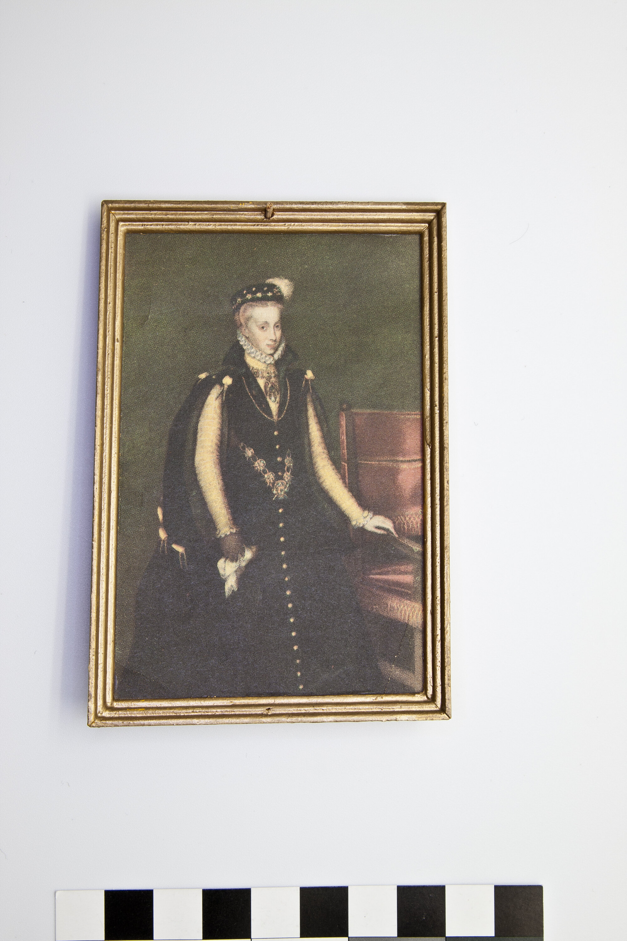 Reproduction painting from Room 13 - Dining Room, Main Building Section, Pendle Hall. From left side of rear wall. The original painting depicts Anne of Austria, Queen of Spain (1549-1580), Wife of Philip II of Spain (1527-1598), and was painted by Dutch artist Anthonis Mor (circa 1517-1577).