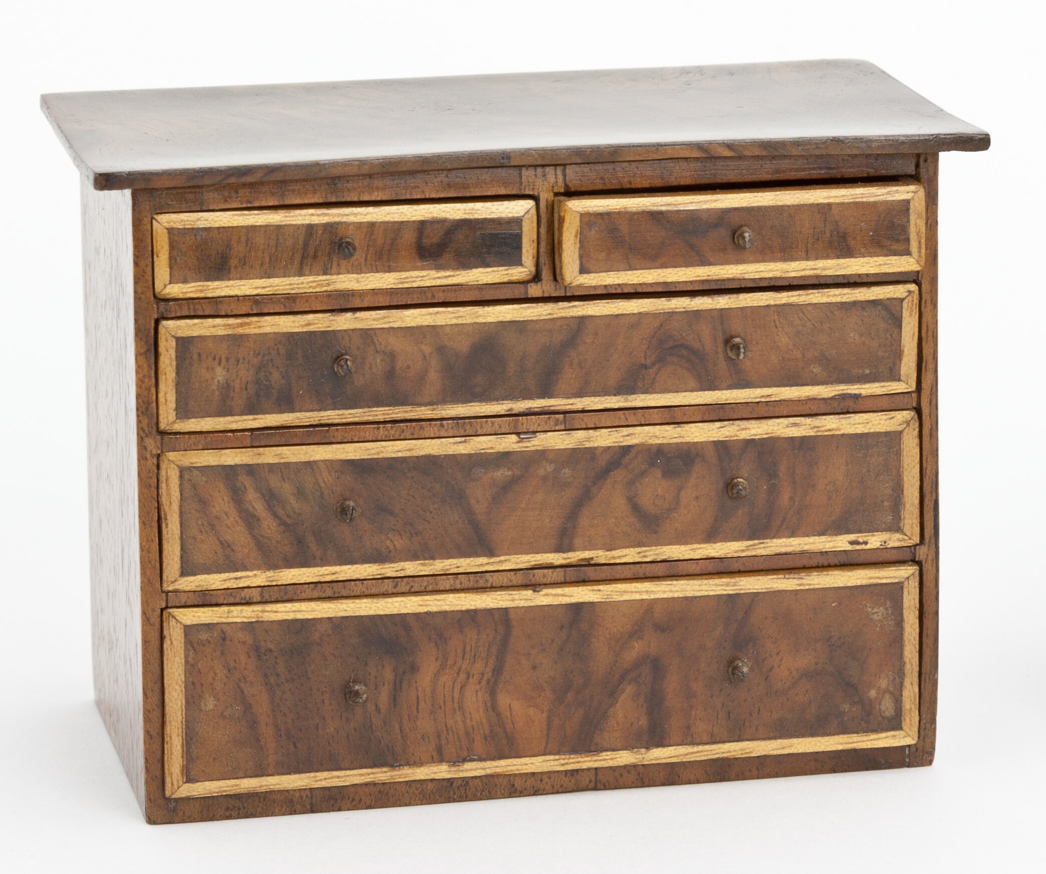 Wooden chest of drawers. Seven drawers, two smaller than the other five.