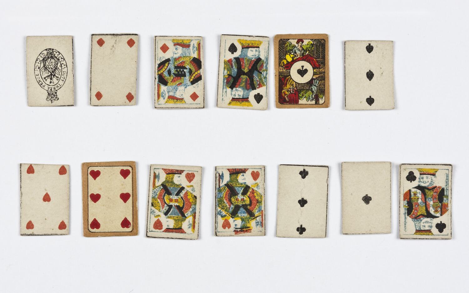 Incomplete deck of cards made from cardboard.