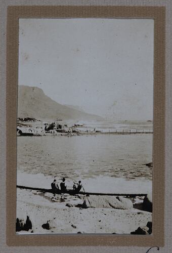 Hand-written in ink on the support underneath the photograph and towards the centre of the album page: 'Camps Bay, Capetown / March 1919.'