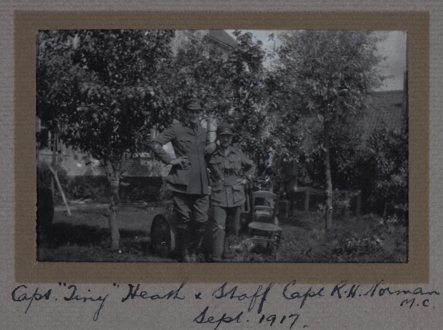 Image depicting Captain "Tiny" Heath and Staff Captain R. H. Norman, M.C. at an unknown location. The image is dated to September 1917.