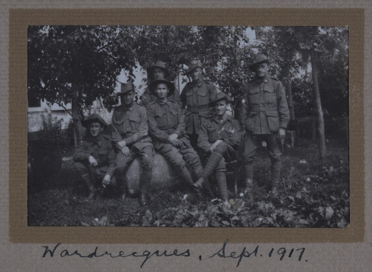 Image depicting a group of servicemen at Wardrecques, France. The image is dated to September 1917.