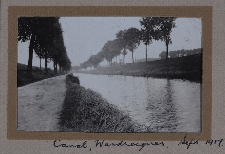 Image depicting the canal at Wardrecques, France. The image is dated to September 1917.