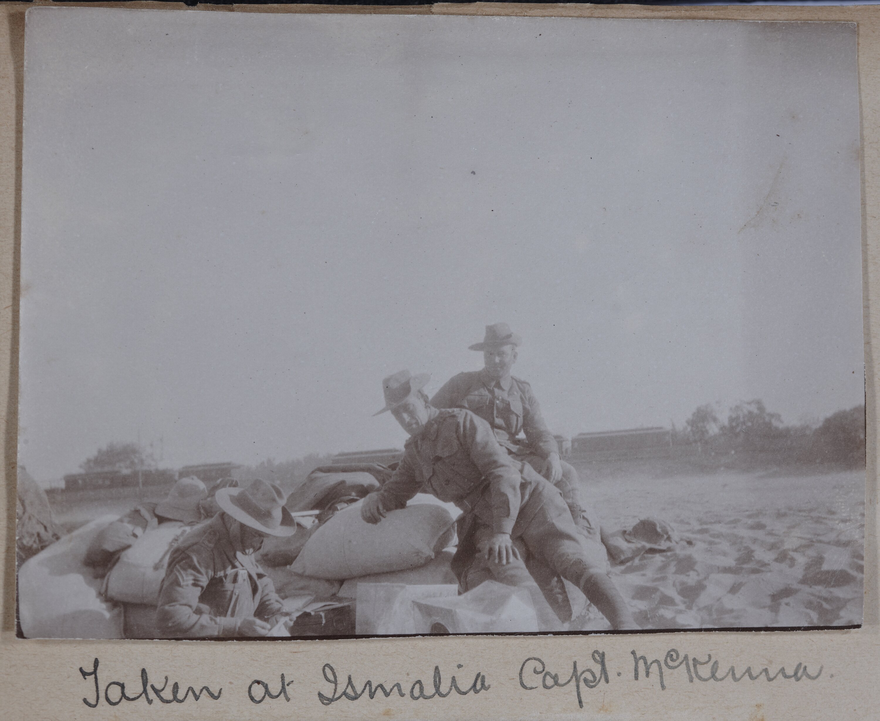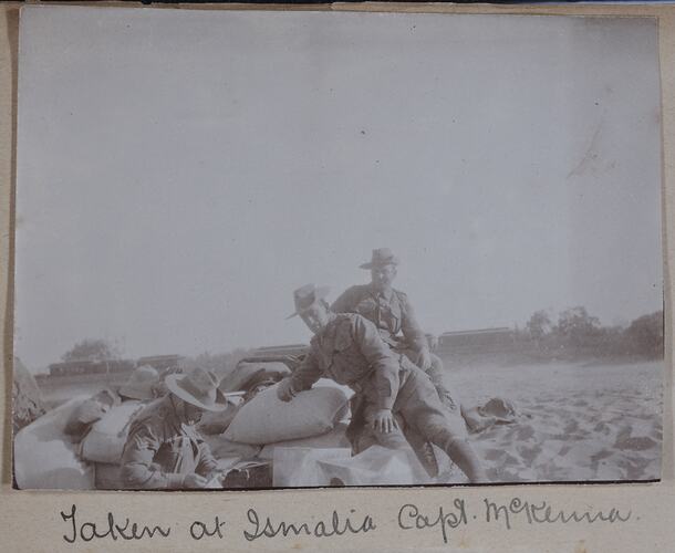 Hand-written in ink on the support underneath the photograph: 'Taken at Ismalia. Capt. McKenna' Hand-written in pencil on the back of the photograph: 'Taken at / Ismalia / by one of my men'
