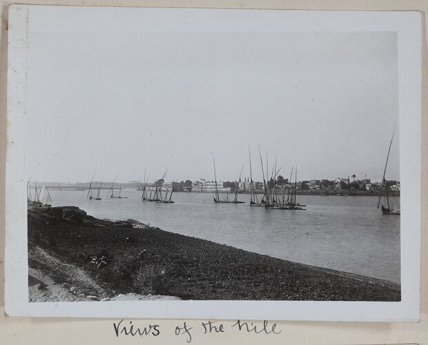 Hand-written in ink on the support underneath the photograph: 'Views of the Nile' Hand-written in pencil on the back of the photograph: 'View of Nile / 19'