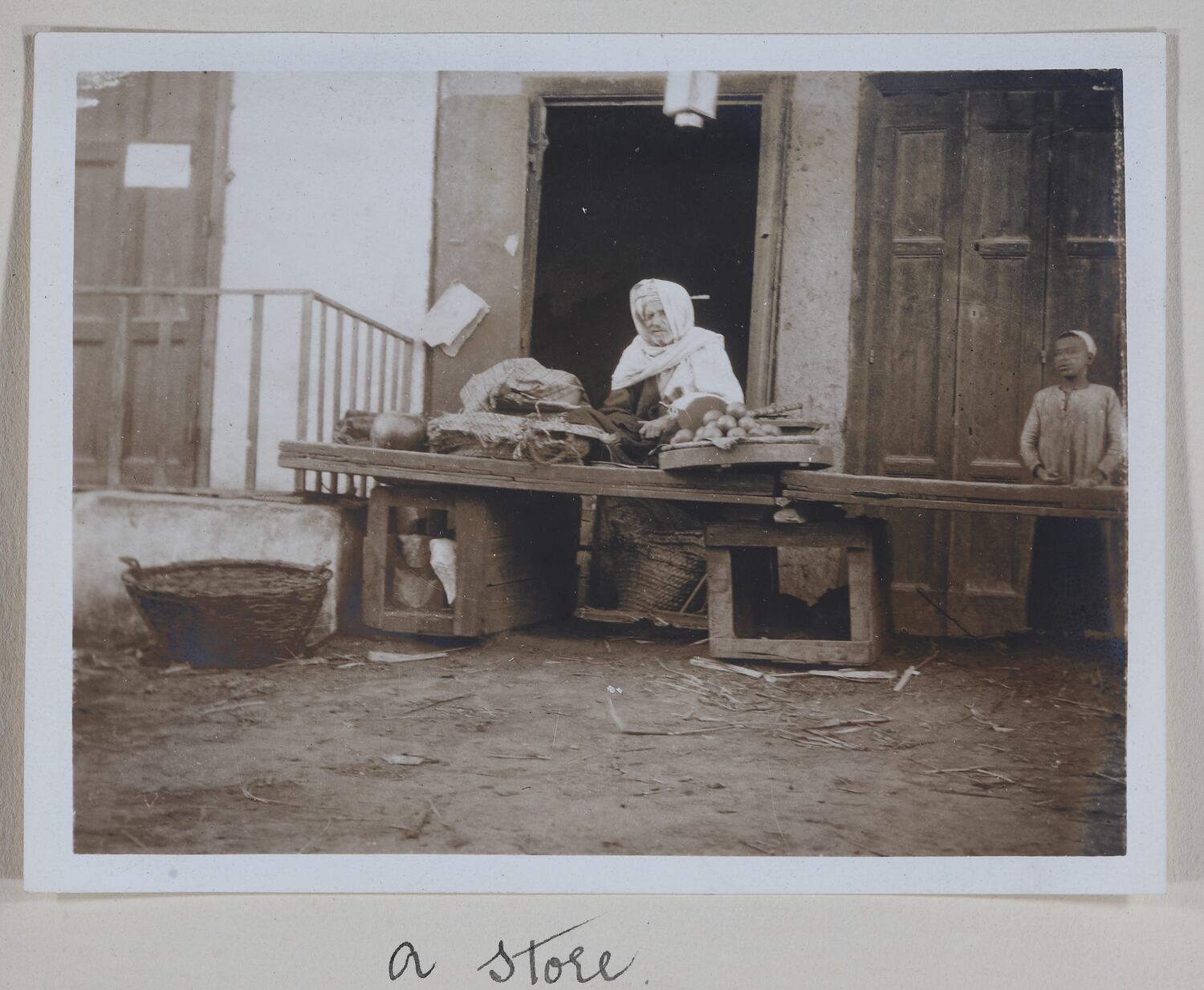 Hand-written in ink on the support underneath the photograph: 'A Store' Hand-written in pencil on the back of the photograph: 'store / (horizontal line)'