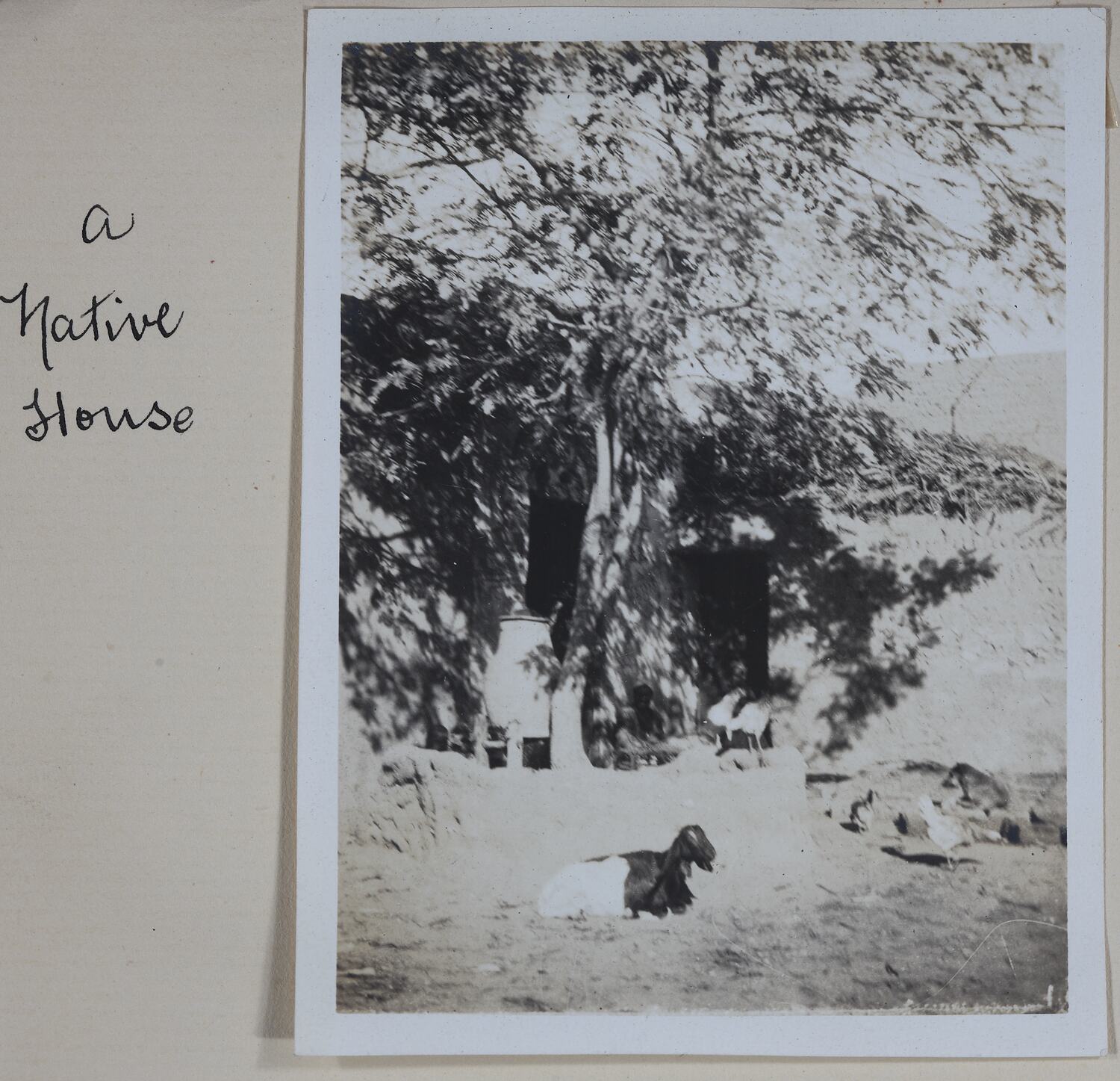 Hand-written in ink on the support to the left of the photograph: 'A / Native / House' Hand-written in pencil on the back of photograph: 'Native House / (horizontal line)'