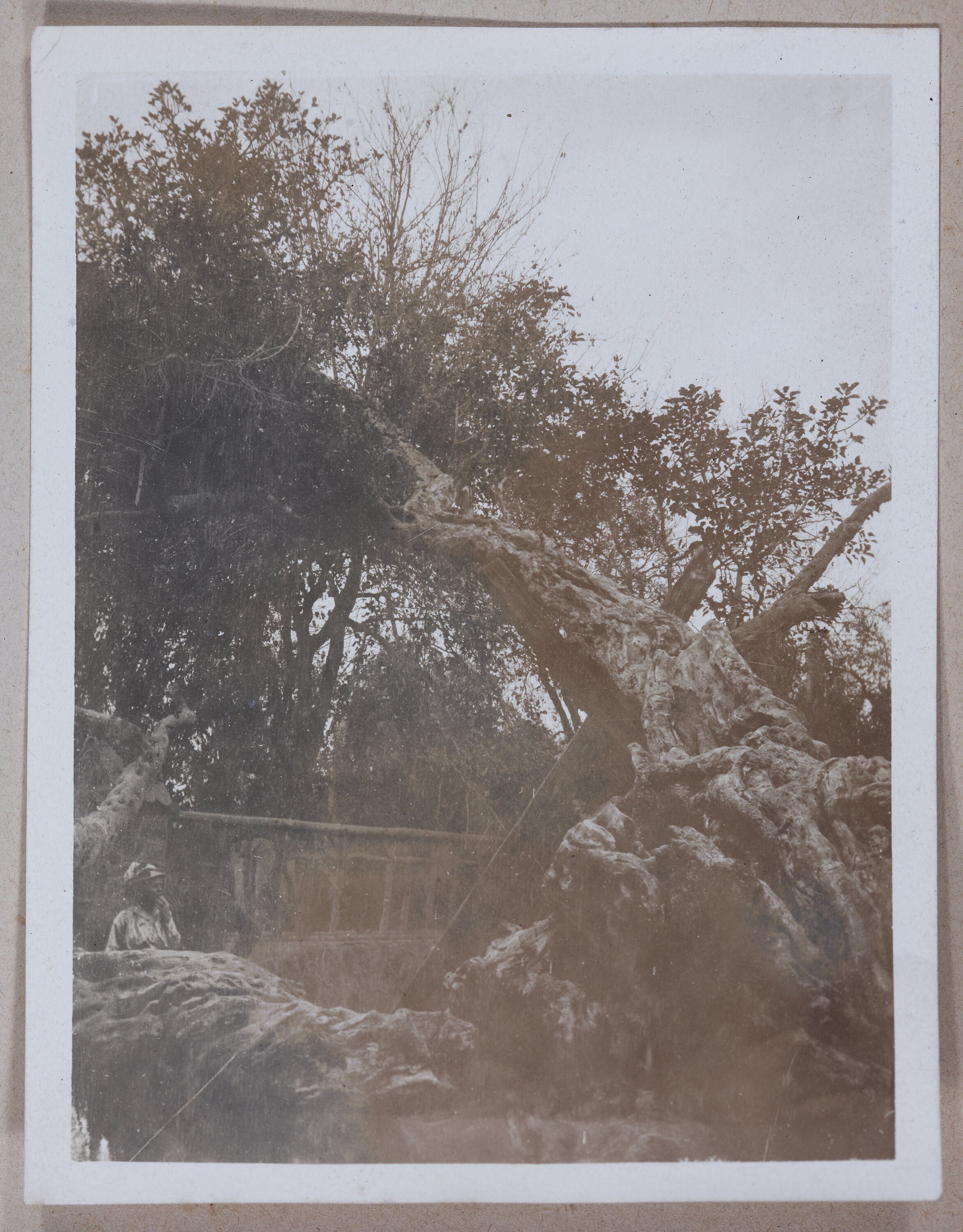 Hand-written in ink on the support underneath the photograph and in the middle of the album page: 'The Holy Tree' Hand-written in pencil on the back of the photograph: 'The Holy Tree / (horizontal line)'