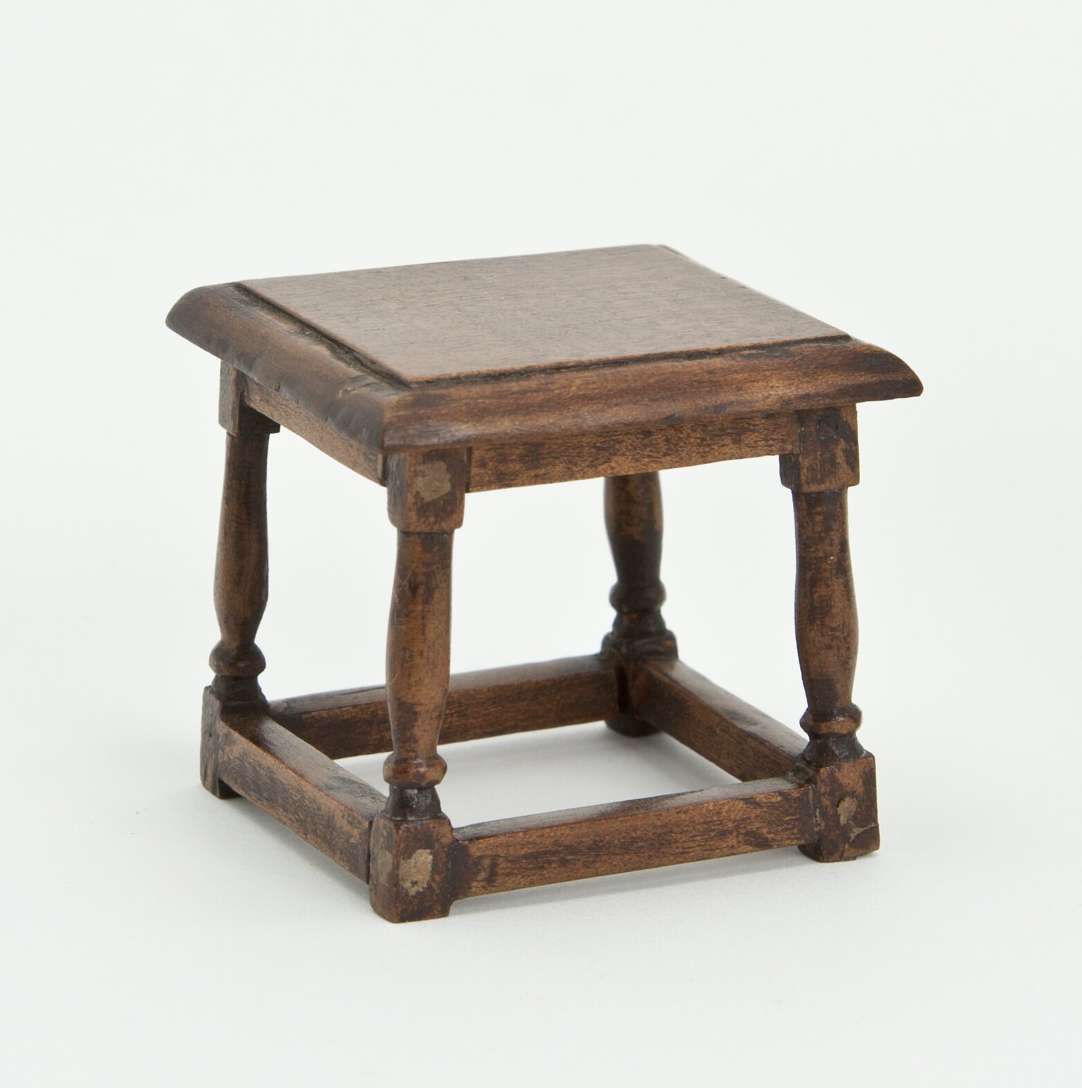 Small square wooden table with turned legs.