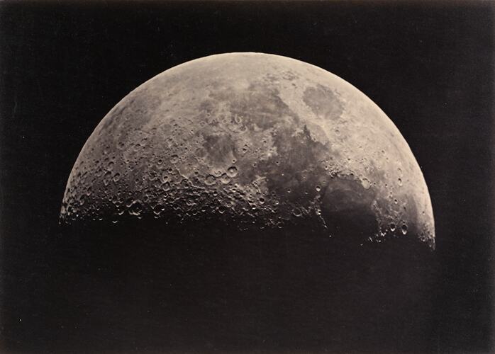 Photograph of the Moon, taken with the Great Melbourne Telescope at Melbourne Observatory, South Yarra, Melbourne, Victoria, by Joseph Turner, 1875.