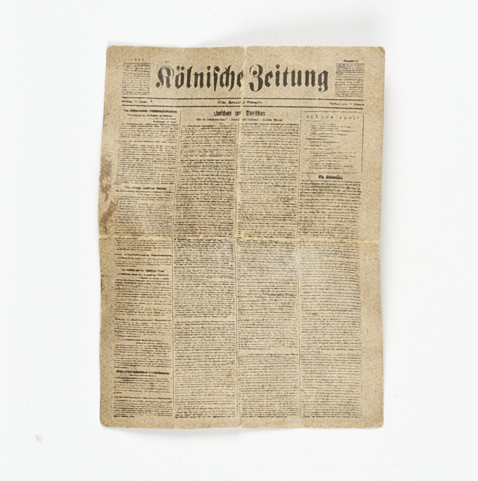Newspaper from Room 17 - Morning Room, Main Building Section, Pendle Hall. From male doll sitting near window.