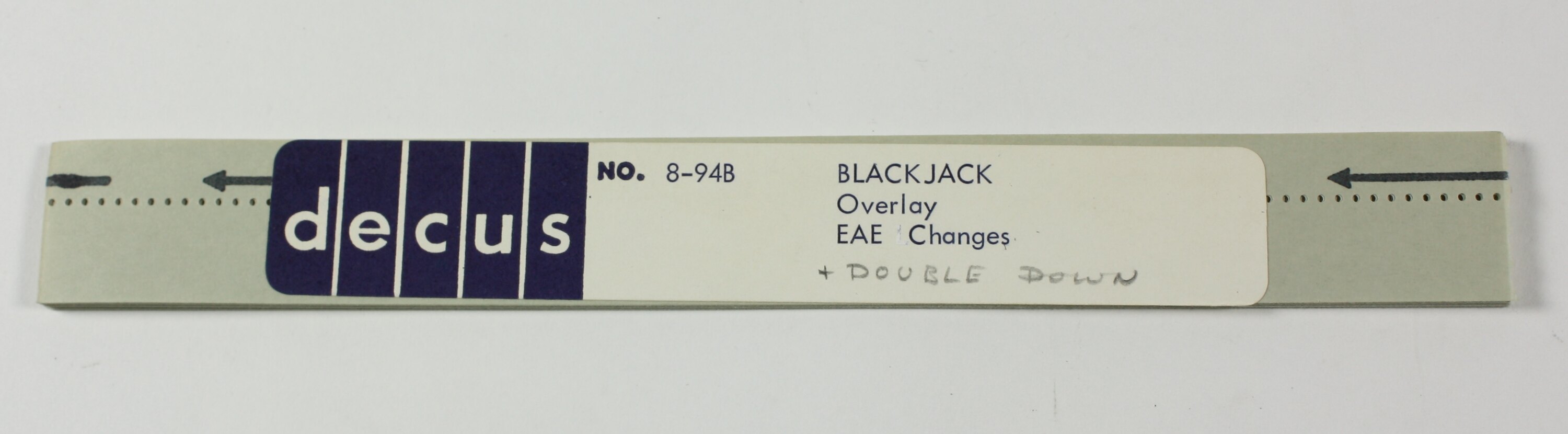 On label: ' decus NO. 8-94B BLACKJACK / Overlay / EAE Changes / + DOUBLE DOWN [handwritten in pencil] '