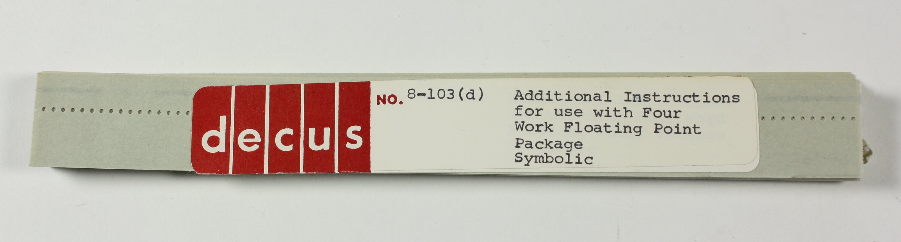 On label: ' decus NO. 8-103(d) Additional Instructions / for use with Four / Work Floating Point / Package / Symbolic '