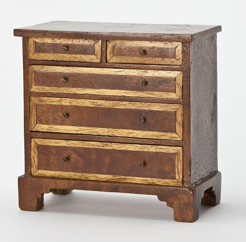 Chest of drawers with five drawers of varying widths.